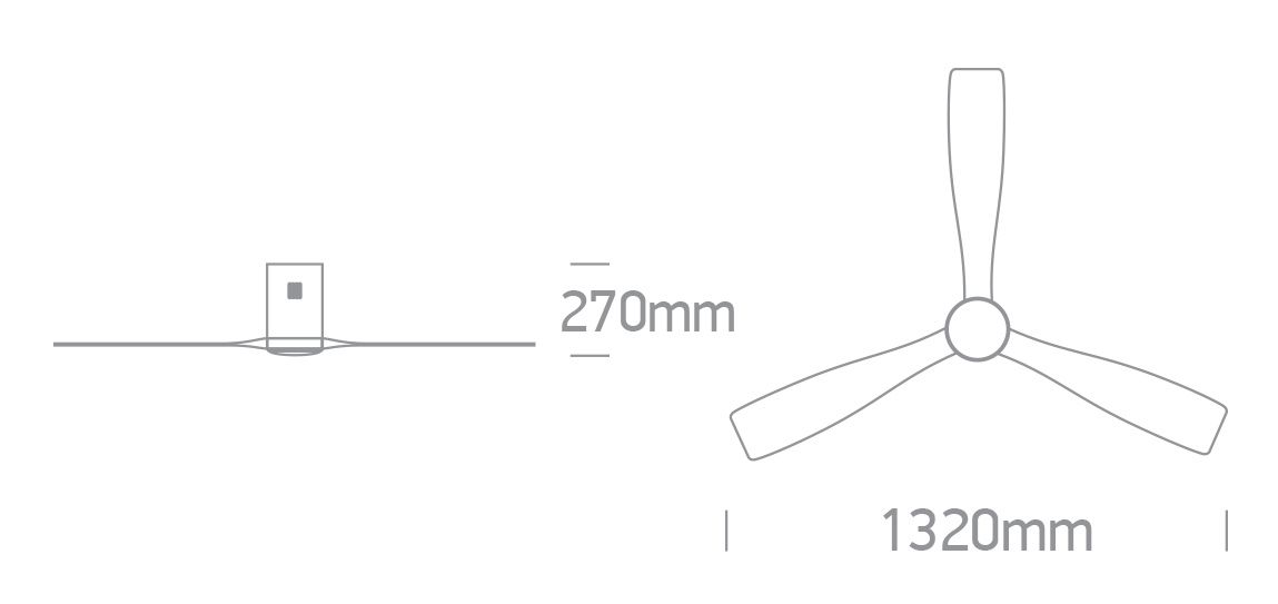 40W Ceiling mounted fan complete with 22W CCT Variable LED and wood blades.